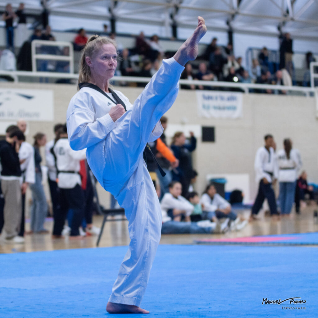 Afgelopen zondag heeft Marion deelgenomen aan het NK Taekwondo Stijl in Almere. Tijdens dit kampioenschap laten deelnemers zogenoemde stijlvormen zien: vooraf vastgestelde looppatronen waarin verschillende technieken technisch correct én met uitstraling worden uitgevoerd.